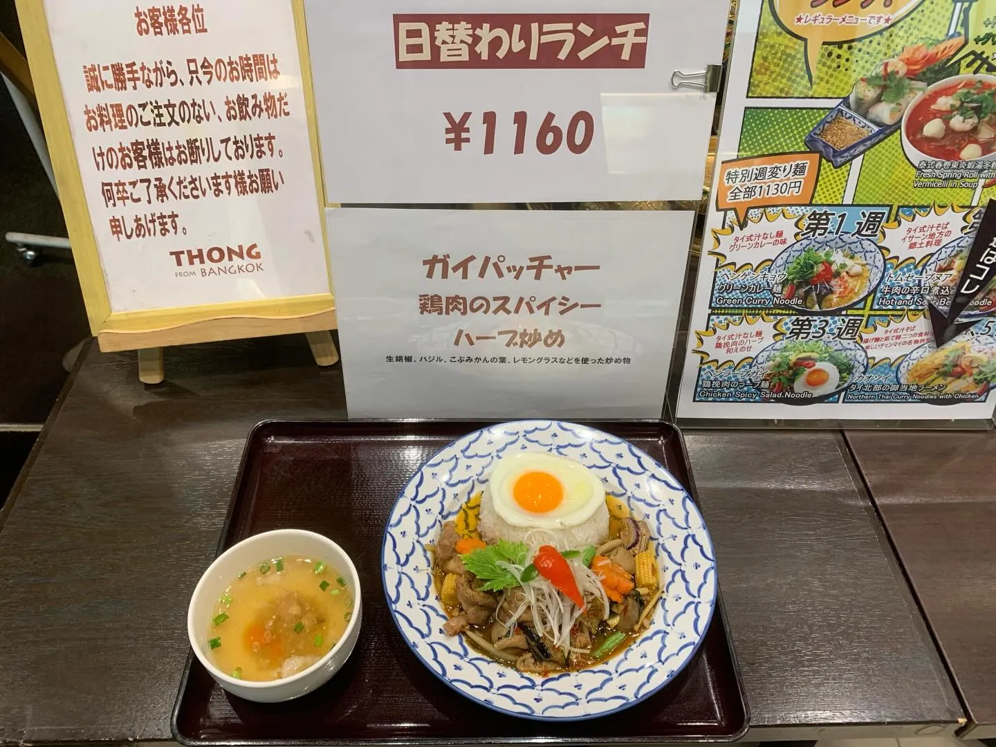 本日の日替わりランチ。 2025/12/23 本日の日替わりランチ。 鶏肉のスパイシーハーブ炒め(税込1160円)。 週替わり麺。 チェンマイ地方のカレー汁そば(税込1130円)。 週替わり盛り合わせランチ。 ガパオライスとパッタイの盛り合わせ(税込1340円)です。 ご来店をお待ちしております。 #スパイシー #ハーブ #カオソイ #ガパオ #パッタイ